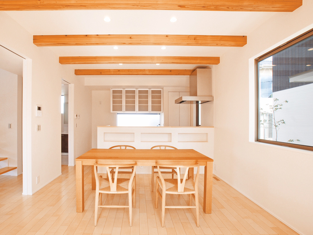 見どころは、 LDKに畳コーナー、SCL、FCL、WICと収納量豊富で、部屋を効率良く利用できる設計。リビングは見せ梁を施し、家族が楽しく寛げます。