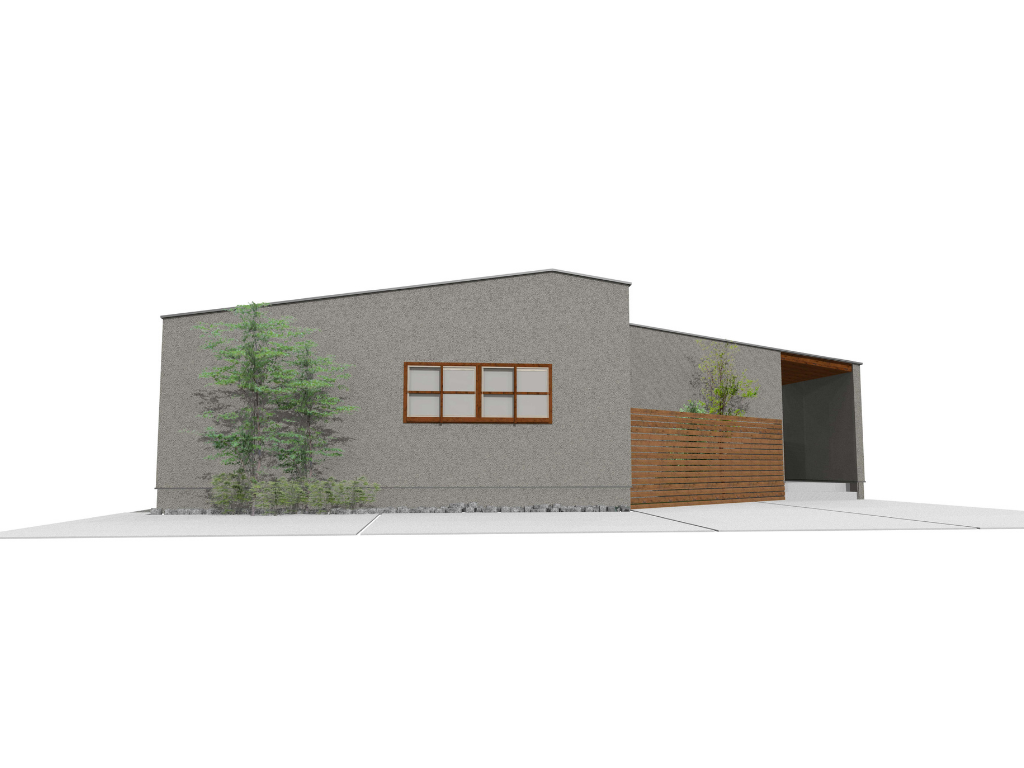お施主様の要望により、横に広がる造形。切妻屋根。