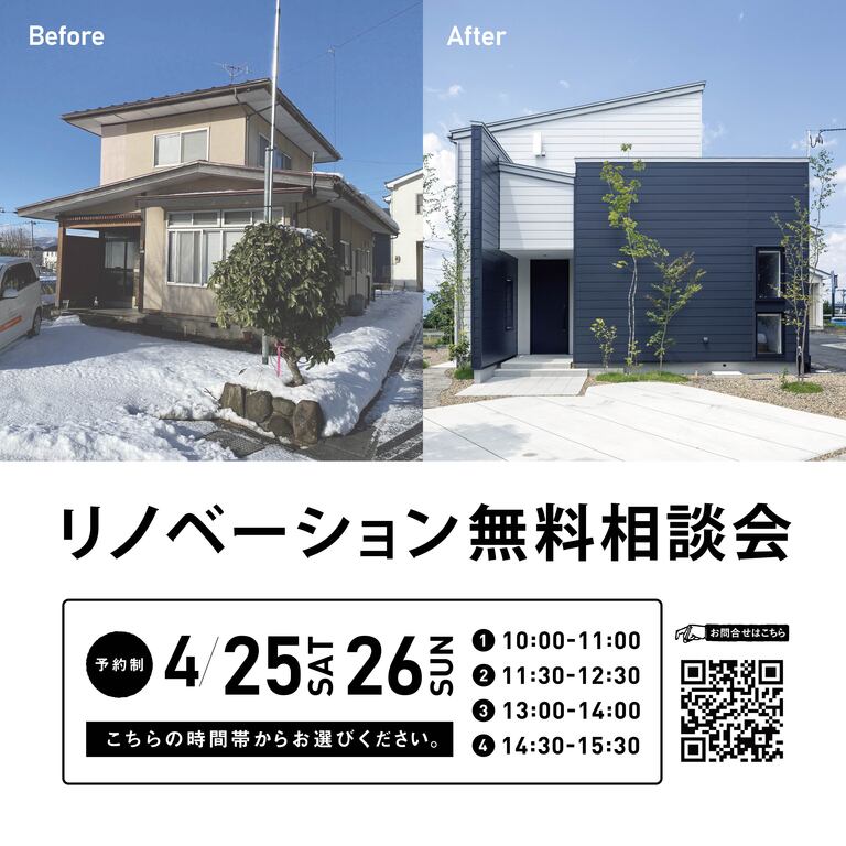 | タイトル | 4/25.26 リノベーション無料相談会 |