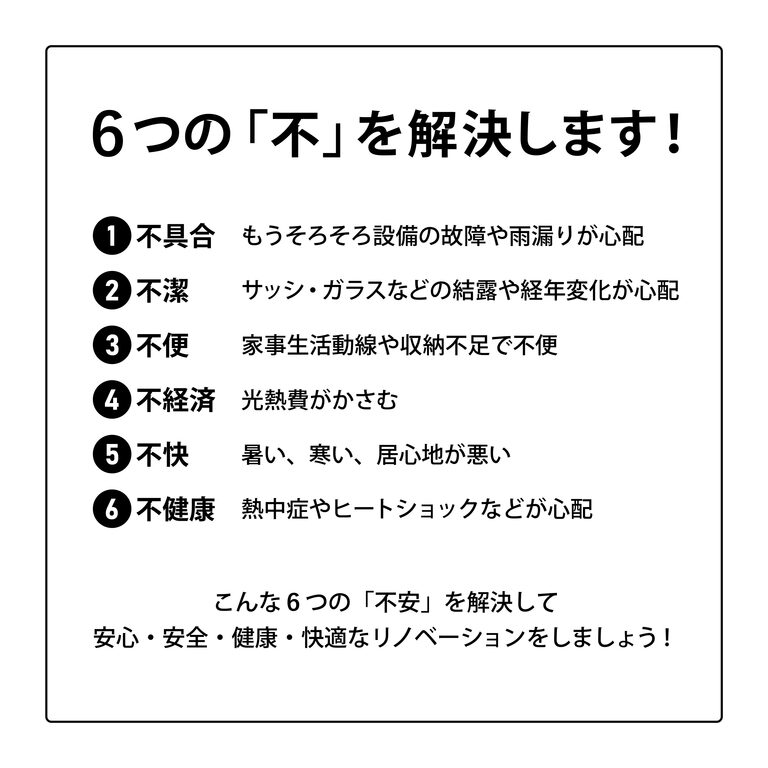 6つの「不」を解決します!