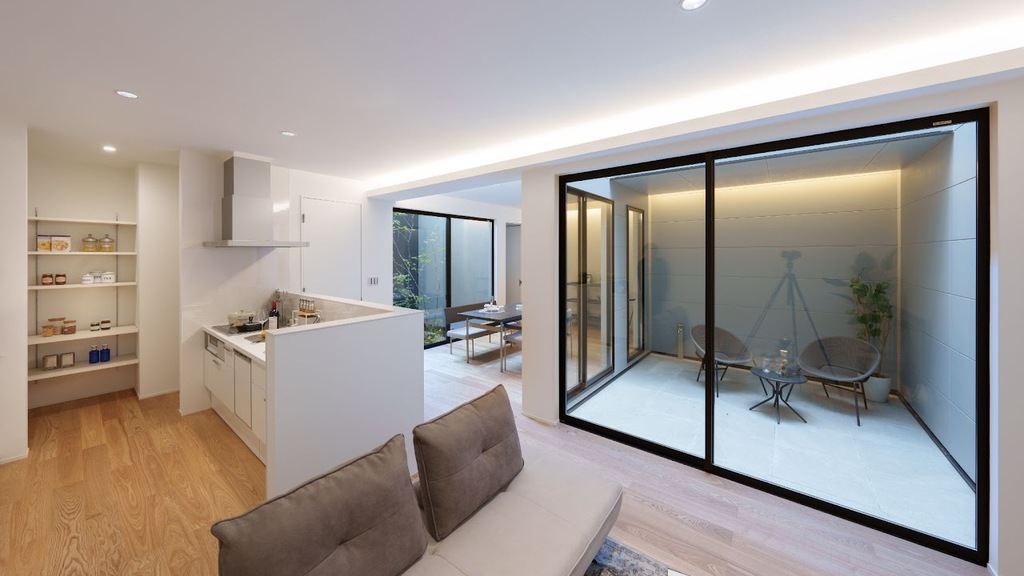 LDKが2つの中庭に面していることにより、プライバシーがありつつも解放感があり明るい住宅となっています。
