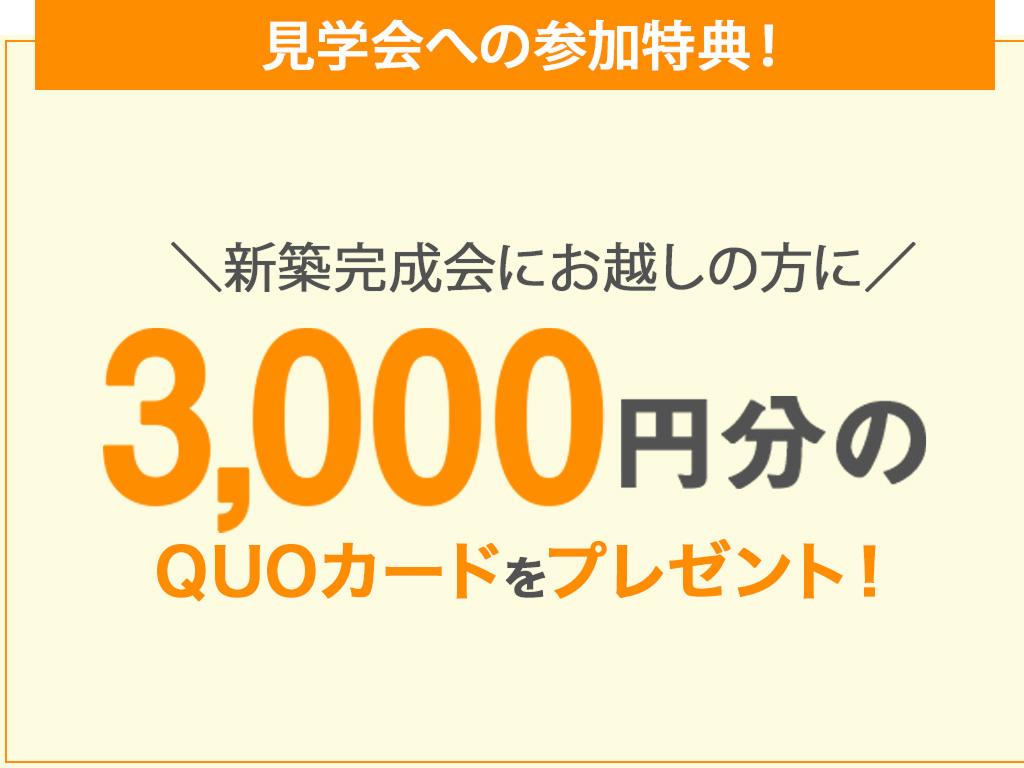 今なら見学会予約で、QUOカード3000円分ご用意しています!