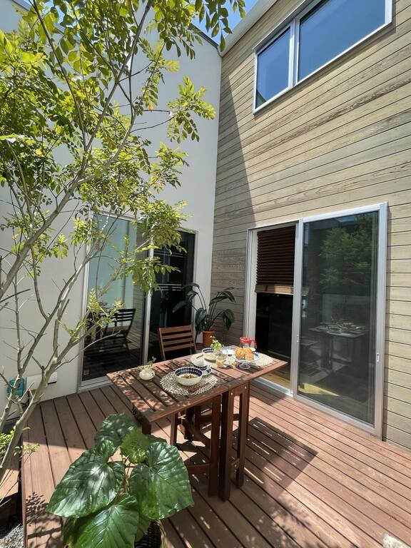 【中庭】休日のコーヒータイム・バーベキュー・犬のくつろぎスペースで大活躍