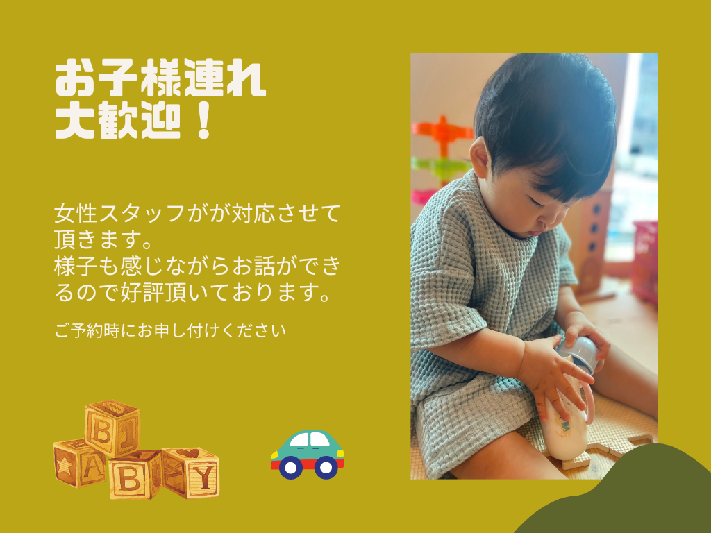 ご家族ご一緒のご参加をお待ちしております。女性スタッフがお子様をご対応させていただきます。