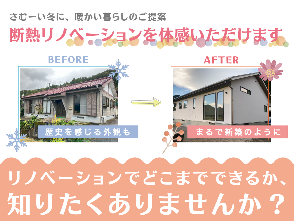| タイトル | 【断熱リノベ】リノベーションでどこまでできるか知りたくないですか?【姶良市蒲生町】 |