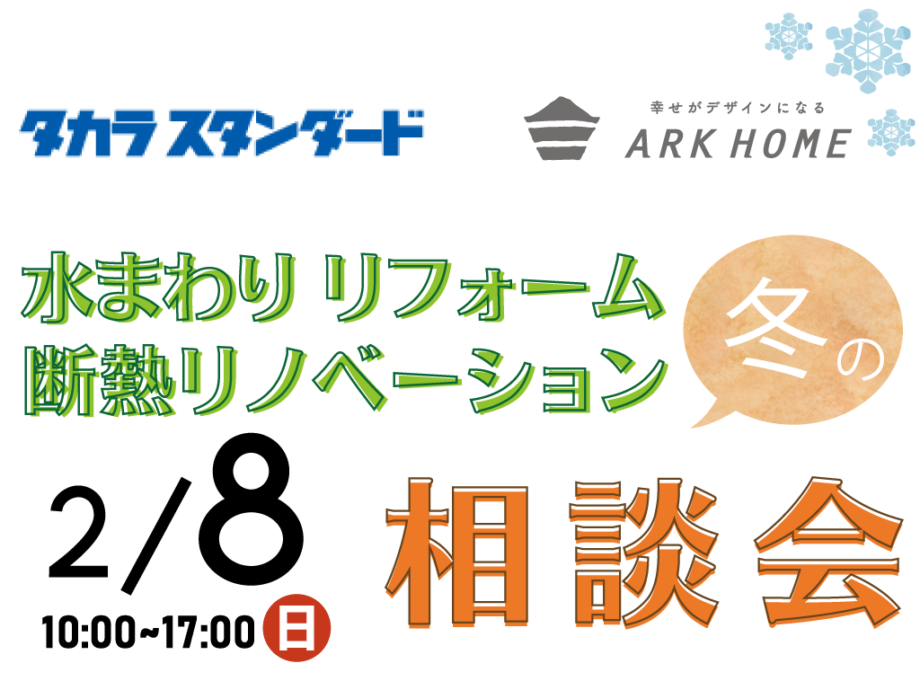 今回タカラスタンダード鹿屋のショールームにて、水回りに関するリフォームや住まいのリノベーションに関する無料相談会を実施します。最新のキッチン・バス・化粧洗面所を実施に見て触れながらARKHOMEスタッフが理想の住まいづくりを丁寧にサポート致します。