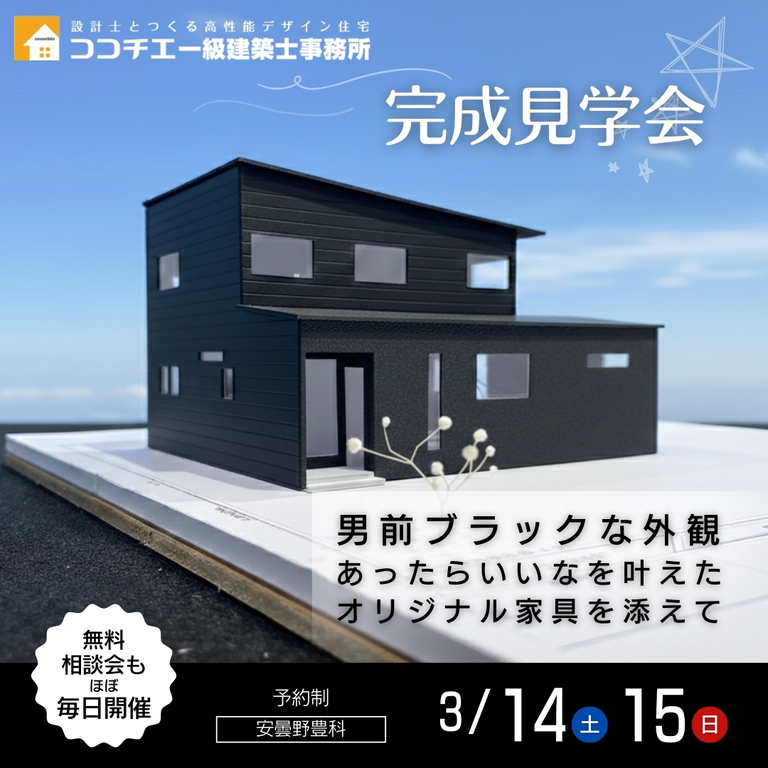 〈安曇野市〉男前ブラックな外観~あったらいいなを叶えたオリジナル家具を添えて~完成見学会