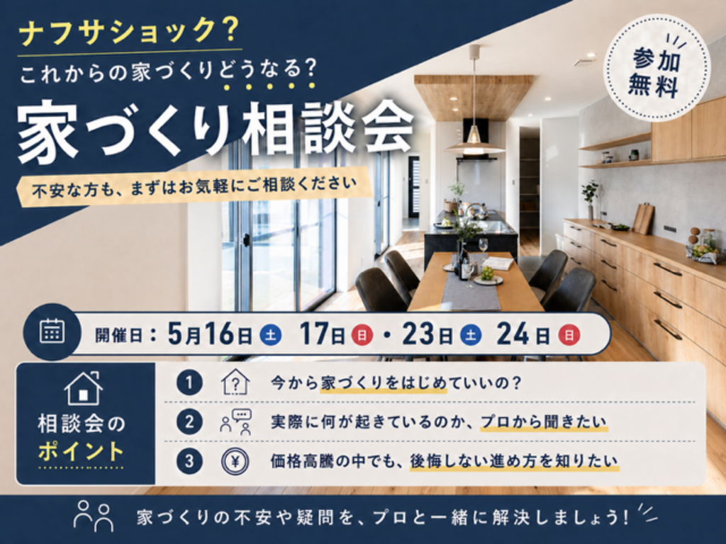 | タイトル | これからの家づくりはどうなる⁉後悔しない家づくりを学ぶ 『家づくり相談会』 |