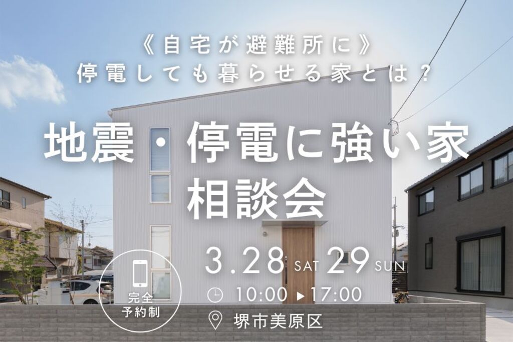 | タイトル | 3/28・29 地震・停電に強い家 相談会【堺市・富田林市】 |
