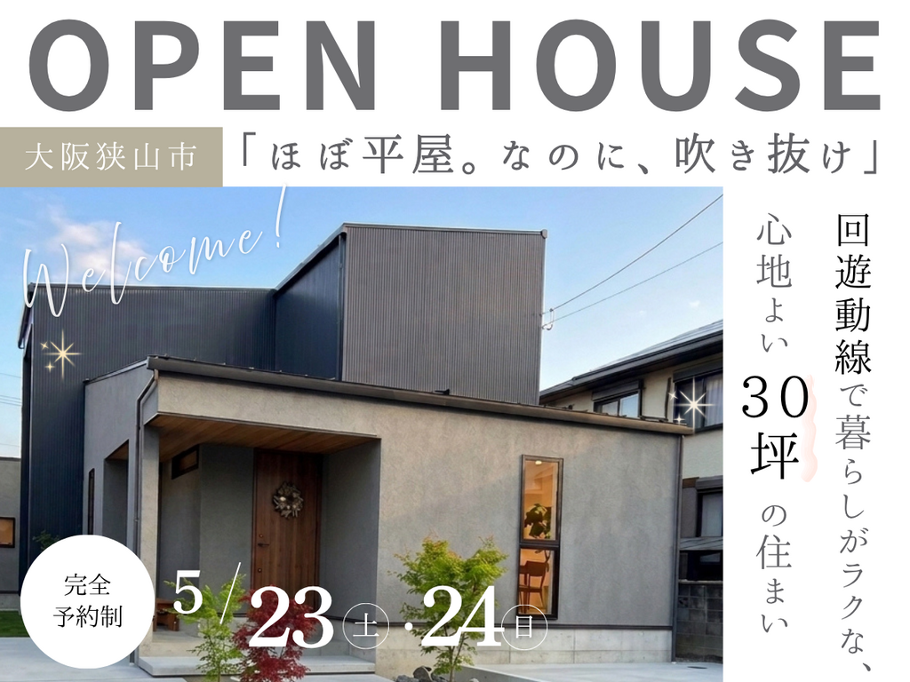 《堺市》5/23~完成見学会 「ほぼ平屋。なのに、吹き抜け。」回遊動線で暮らしが心地良い30坪の家