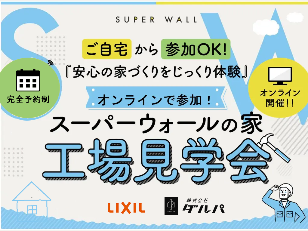 | タイトル | 完全予約制|高性能住宅の秘密を公開!スーパーウォール【オンライン工場見学会】 |