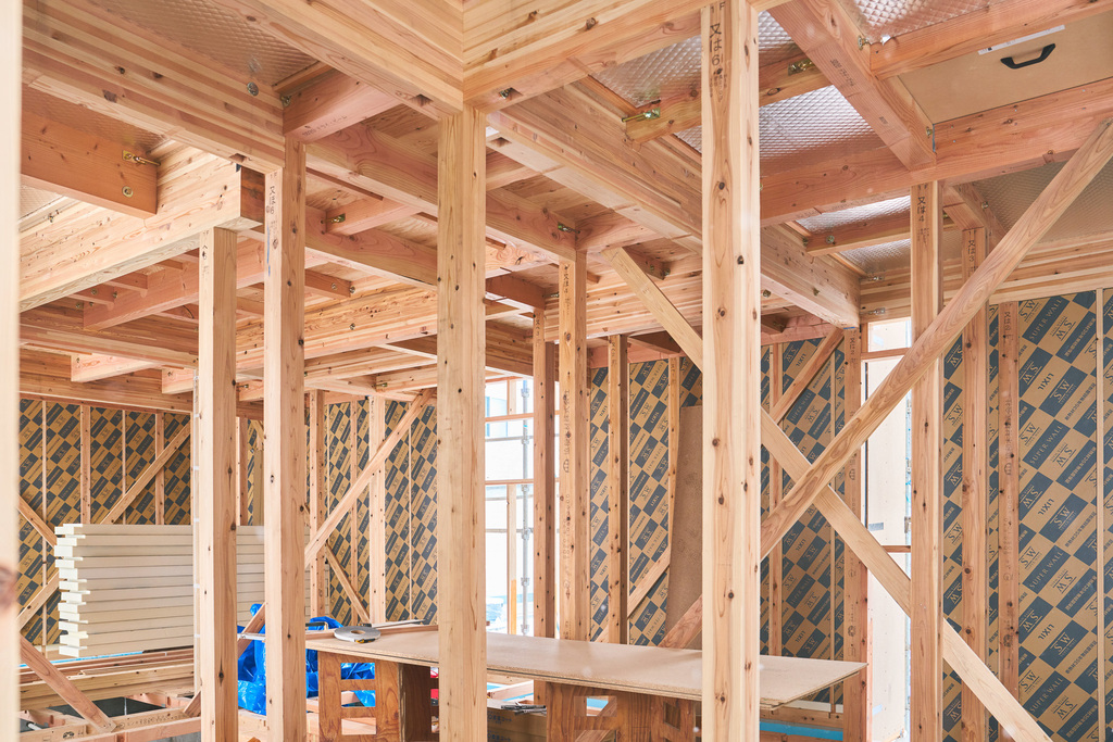 構造材には、日本の風土で育ったヒノキ、ヒバ、スギなどの国産材を積極的に使用しています。