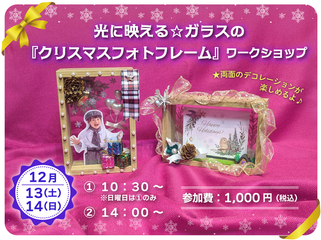 | タイトル | 【目黒区】光に映える☆ガラスの『クリスマスフォトフレーム』ワークショップ開催! |