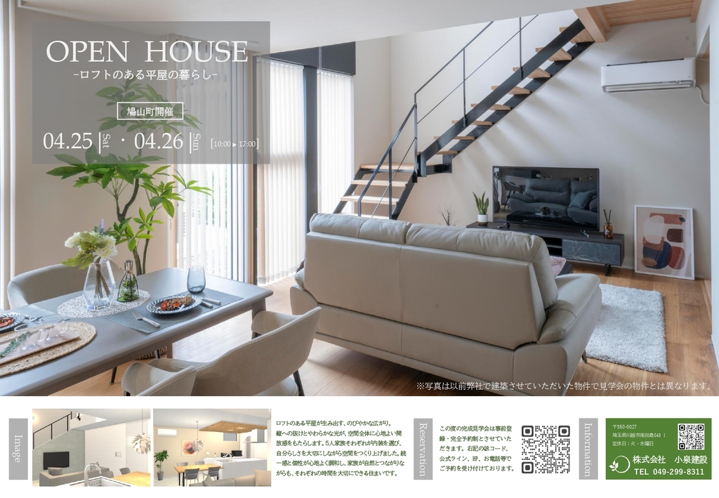 | タイトル | 鳩山町開催! 【ロフトのある平屋】完成見学会 |