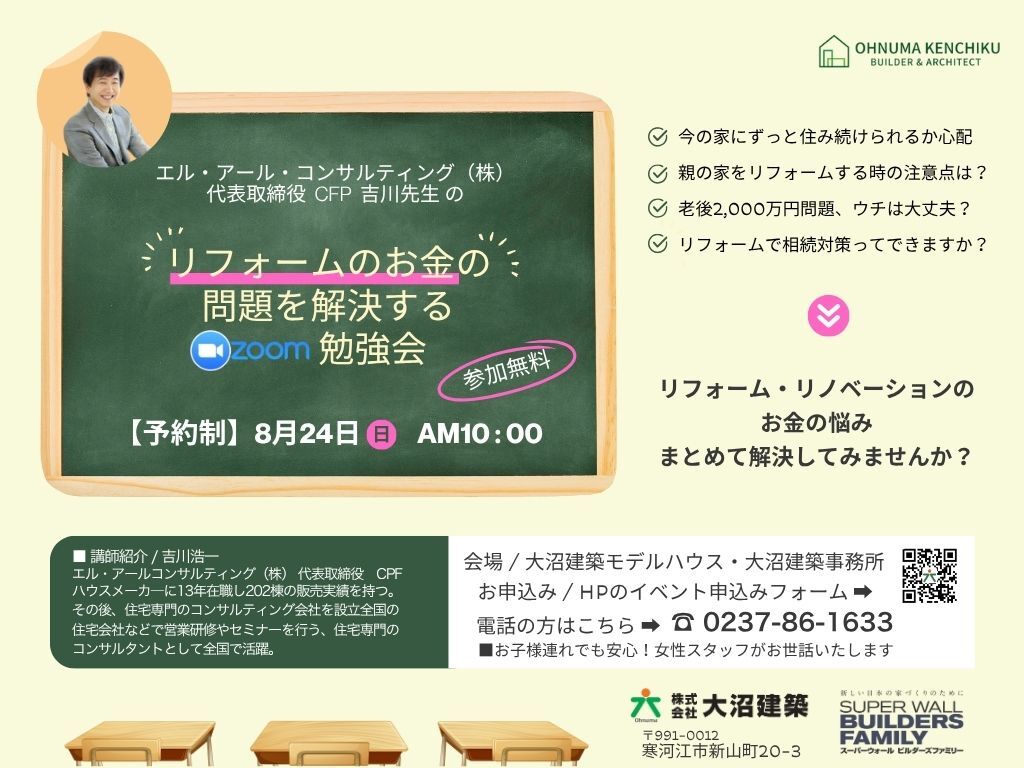 | タイトル | リフォームのお金の問題を解決するzoom勉強会 |