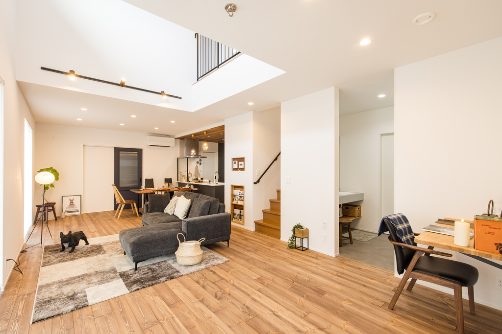 20帖を超えるLDKは愛犬を中心に家族が自然と集まる空間になりました