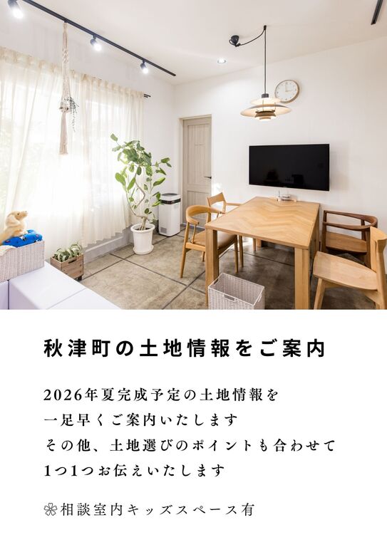 秋津町に2026年夏、新たに土地が完成予定となっております。