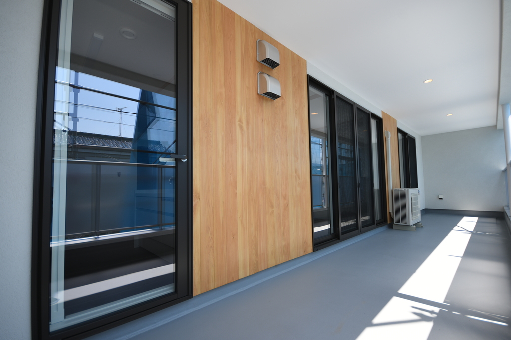 二世帯が、いろいろな使い方ができるように、大きなベランダを設置しました。