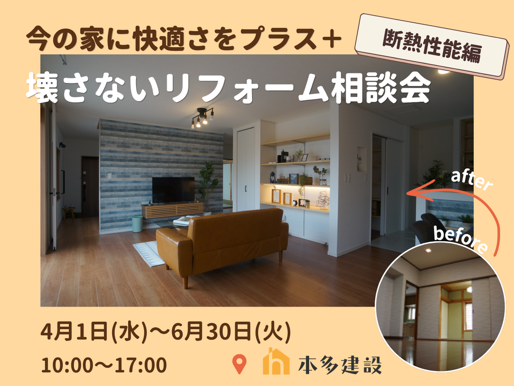 | タイトル | 【置賜地域の皆さま】今の家に快適さをプラス。壊さないリフォーム相談会《断熱性能編》 |