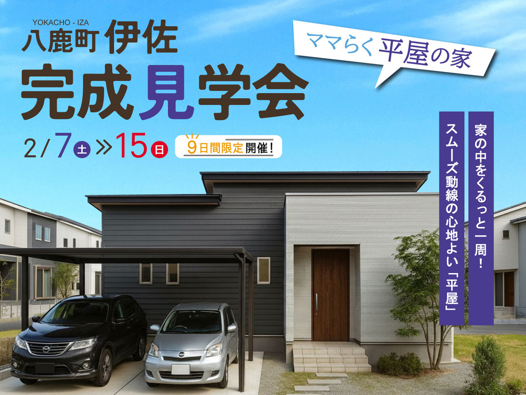 スムーズ動線の心地よい「平屋」新築完成見学会【八鹿町伊佐】