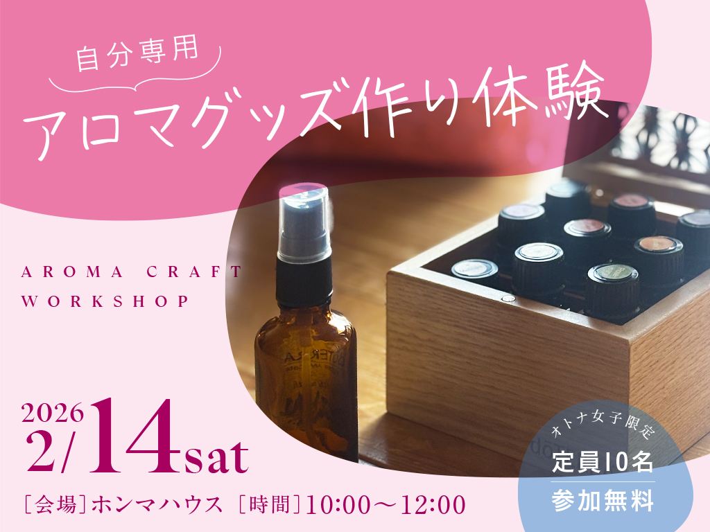 | タイトル | オトナ女子限定!アロマを使ったセルフケアグッズ作り体験 |