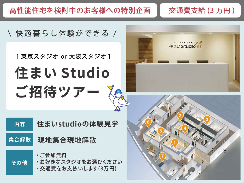 ※住まいスタジオをご体感いただいた後に交通費(3万円)をお渡しします。