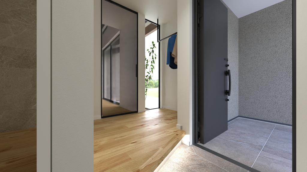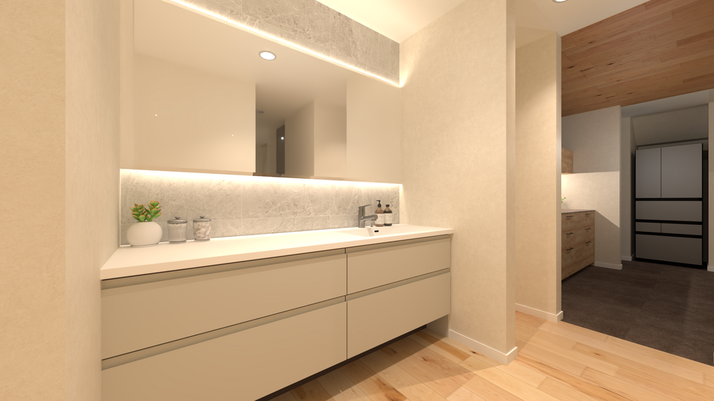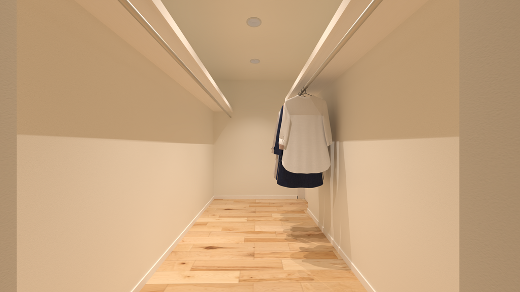 主寝室と大容量の収納を1階に配置し、将来も階段移動の負担が少ない半平屋スタイル。生活の中心を1階に置くことで、日々の家事もスムーズに。2階には子ども部屋や趣味室を備え、成長やライフスタイルの変化にも柔軟に対応できる、快適さと機能性を兼ね備えた住まいです。