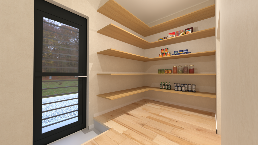 斜め屋根が印象的なスタイリッシュな外観が目を引く、37坪の半平屋住宅。広々としたLDKは、各所に設けた窓から自然光が差し込み、開放感に満ちています。家族が集うリビングルームからは外の自然を望むことが、心地よいひとときを過ごすことができます。1階に主寝室を設けることで、生活のしやすさにも配慮しました。