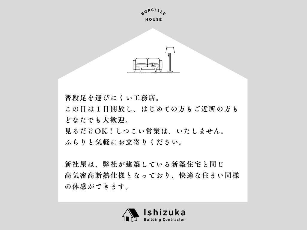 まずは、株式会社石塚工務店がどういう所、どういう会社かを知っていただけたらと思いますので、気軽にふらりとお立寄りください。