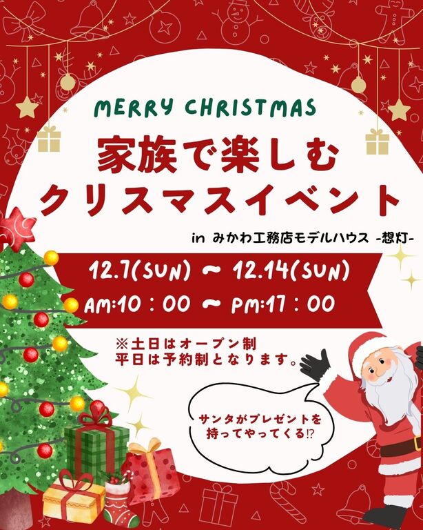 モデルハウス-想灯-にて家族みんなで楽しめるクリスマスイベントを開催します🎄