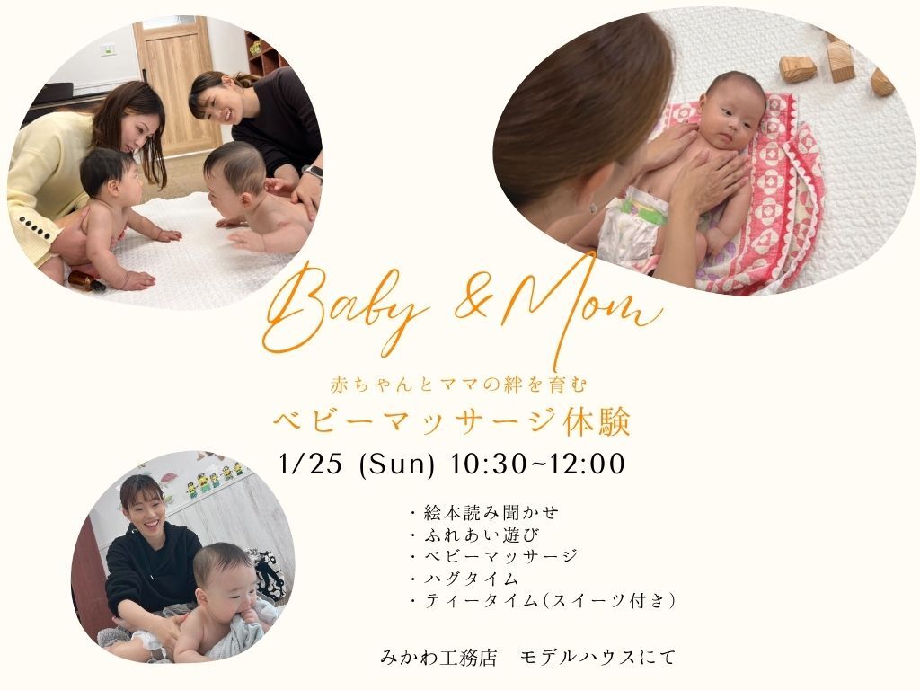 親子でゆったりと触れ合いながら、赤ちゃんとのコミュニケーションを深められるベビーマッサージ体験会です。