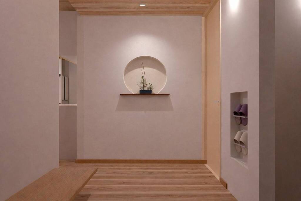 玄関を入ったところにはスリッパを収納できるニッチや、玄関に入った正面に設置した和風のニッチがおしゃれな空間を演出してくれます。