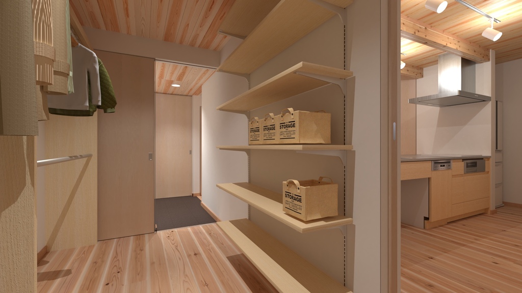 必要な場所にしっかり収納を設け、物が表に出にくい住まいに。すっきりとした室内を保ちやすく、日々の暮らしも快適です。