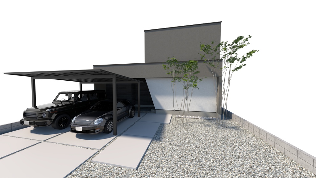 広々とした駐車スペースとカーポート