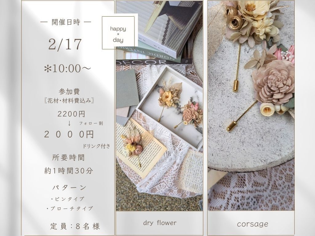 セレモニーの胸元を彩る コサージュを仕立てるワークショップを開催します。