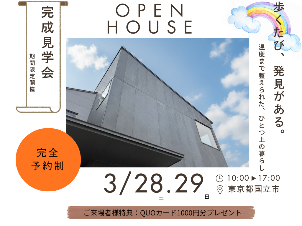 国立に完成した高気密高断熱住宅の見学会を開催します。