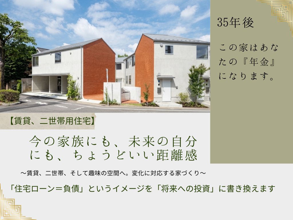 今は家賃収入で家計を助け、将来は親との同居や子供世帯への譲渡など、