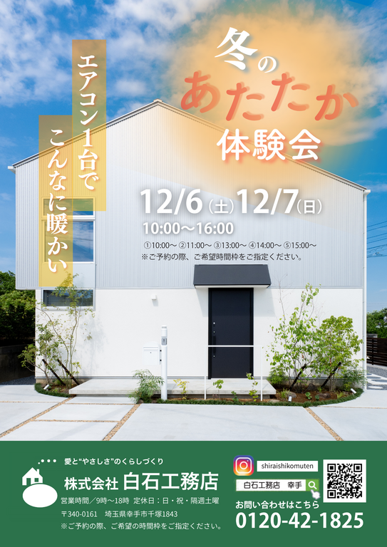 12/6日(土)・7日(日)モデルハウス【あたたか体験会】
