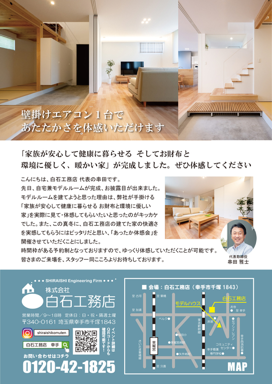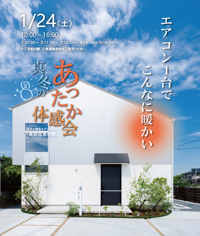 また、この真冬に、白石工務店の建てた家の快適さを実感してもらうにはピッタリだと思い、「あったか体感会」を開催させていただくことにしました。