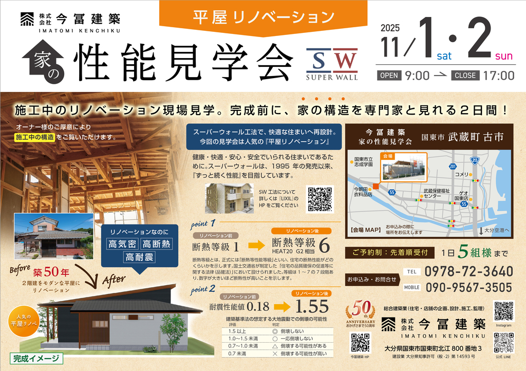 大分県国東市で開催される「平屋リノベ性能見学会」にご興味をいただきありがとうございます。このイベントは理想の住まいを実現させるための貴重な機会になるはずです。
