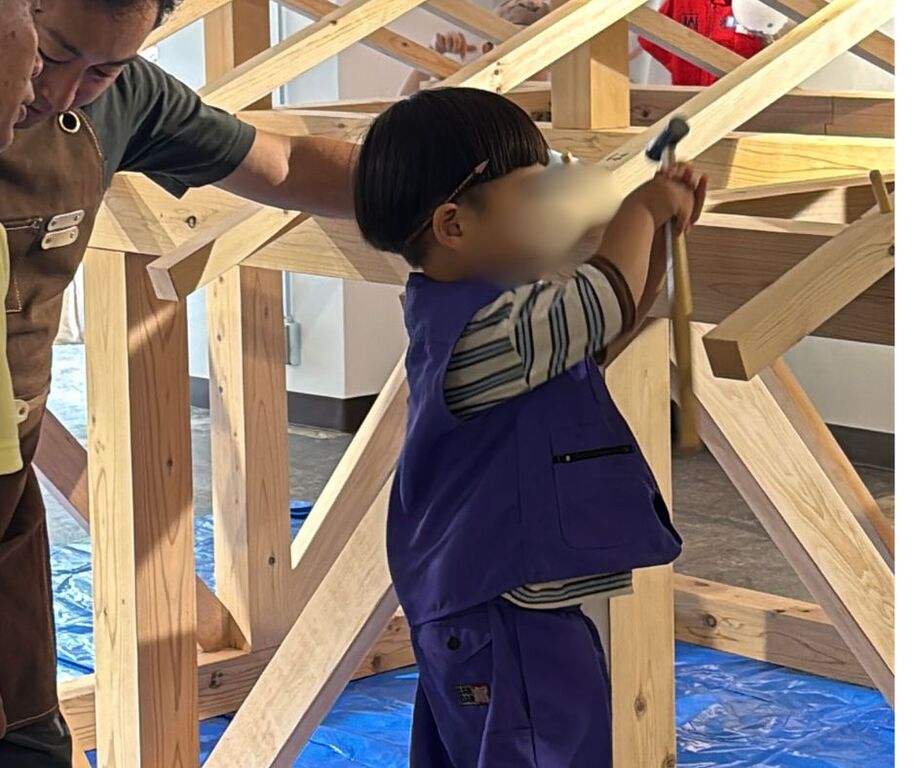 子どもたちは木の香りにつつまれた“大工体験”でトントンと楽しそうに釘を打ち、