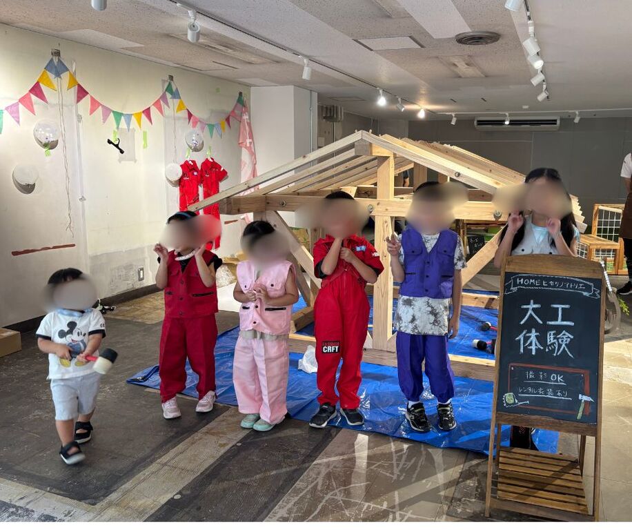 子どもたちは「等身大のお家づくり」を体験できる大工体験ワークショップに挑戦。
