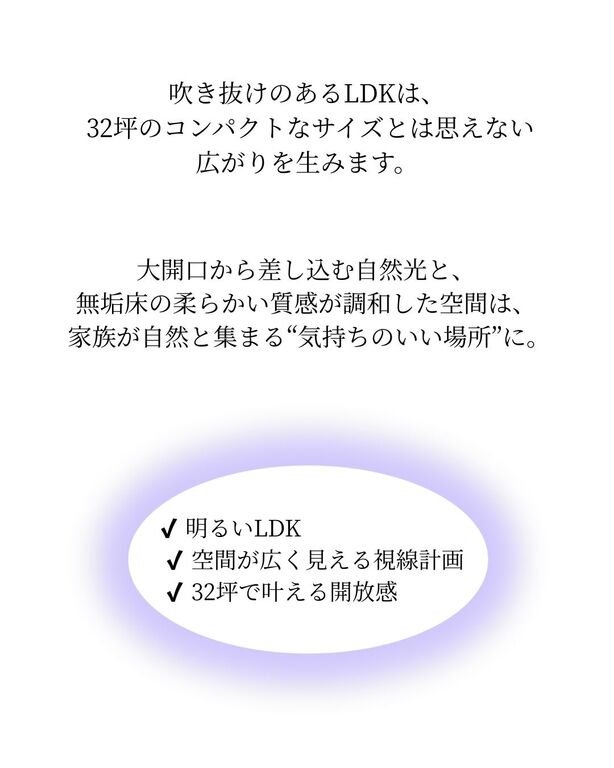 32坪でも広く感じる「吹き抜けLDK」 “開放感 × 暮らしやすさ”のバランスが美しい吹き抜け。