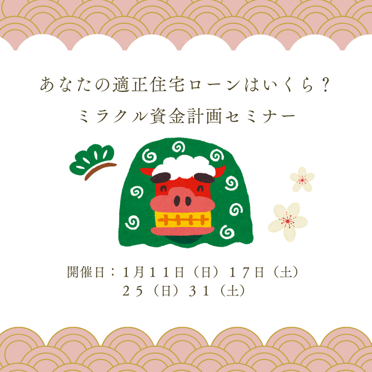 | タイトル | 【1月開催】家を買うとお金が貯まる?!ミラクル資金計画セミナー |