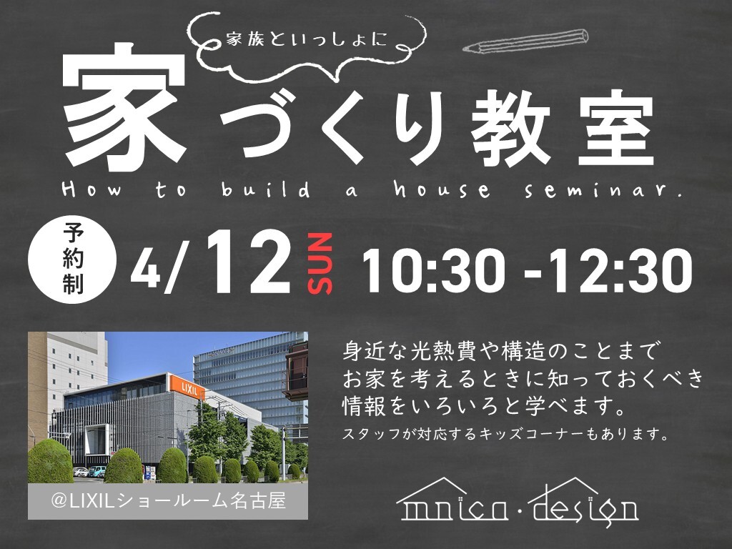 | タイトル | みんなと学ぶ 家づくり教室 @LIXIL名古屋ショールーム |