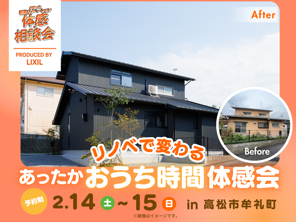 | タイトル | 【高松市牟礼町】リノベで変わる「あったかおうち時間」体感会 |
