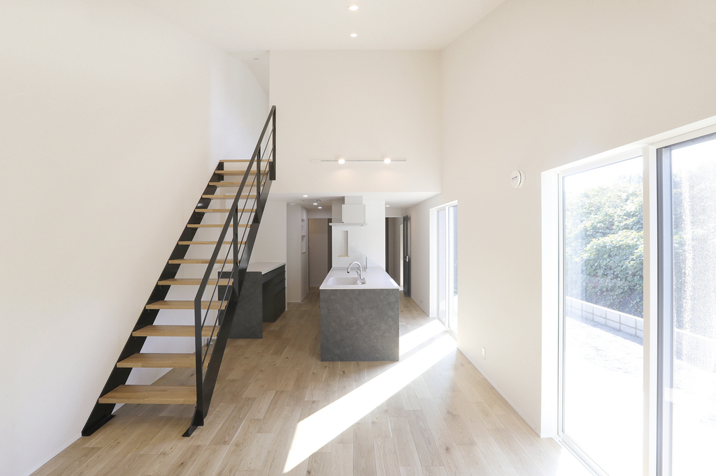 開放的リビングと吹き抜けが生む空間は、家全体に光を取り込み、明るく広々とした家族の憩いの場となります。リビングに隣接するウッドデッキ、そしてドッグランへと繋がり、ご家族だけでなくワンちゃんも楽しめる開放的な暮らしを実現します。