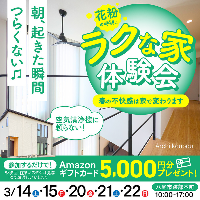 | タイトル | 花粉の時期に楽な家 体験会!! |