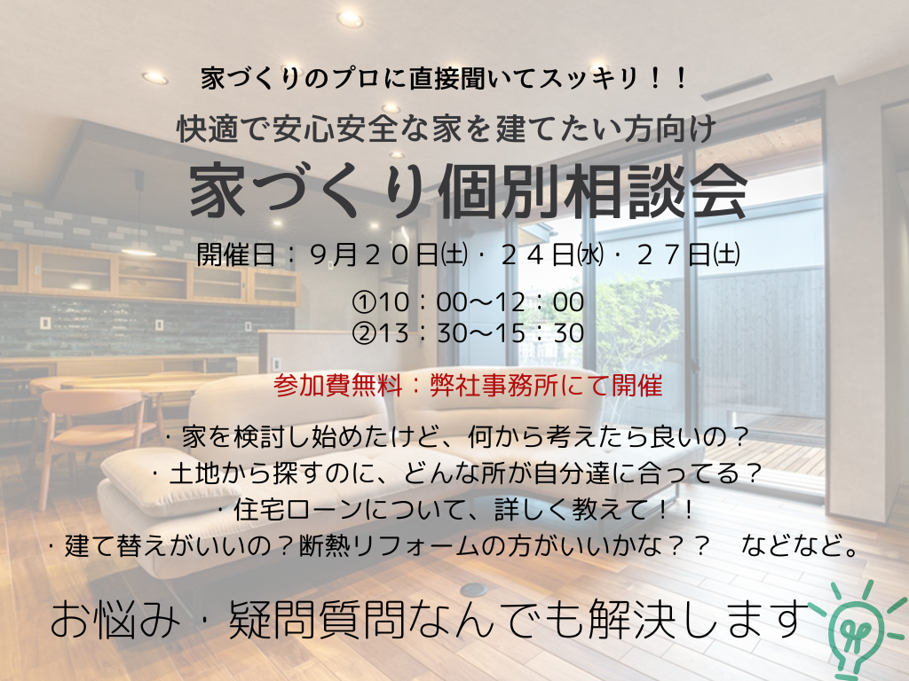 | タイトル | プロが解決します♪ 家づくり個別相談会 |