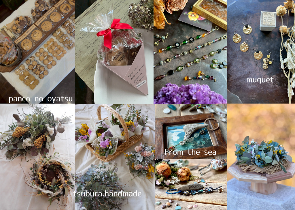 素敵な街並みに、かわいいお菓子やアクセサリー、ドライフラワーや廃材を利用した木工作品のワークショップも同時開催します♪